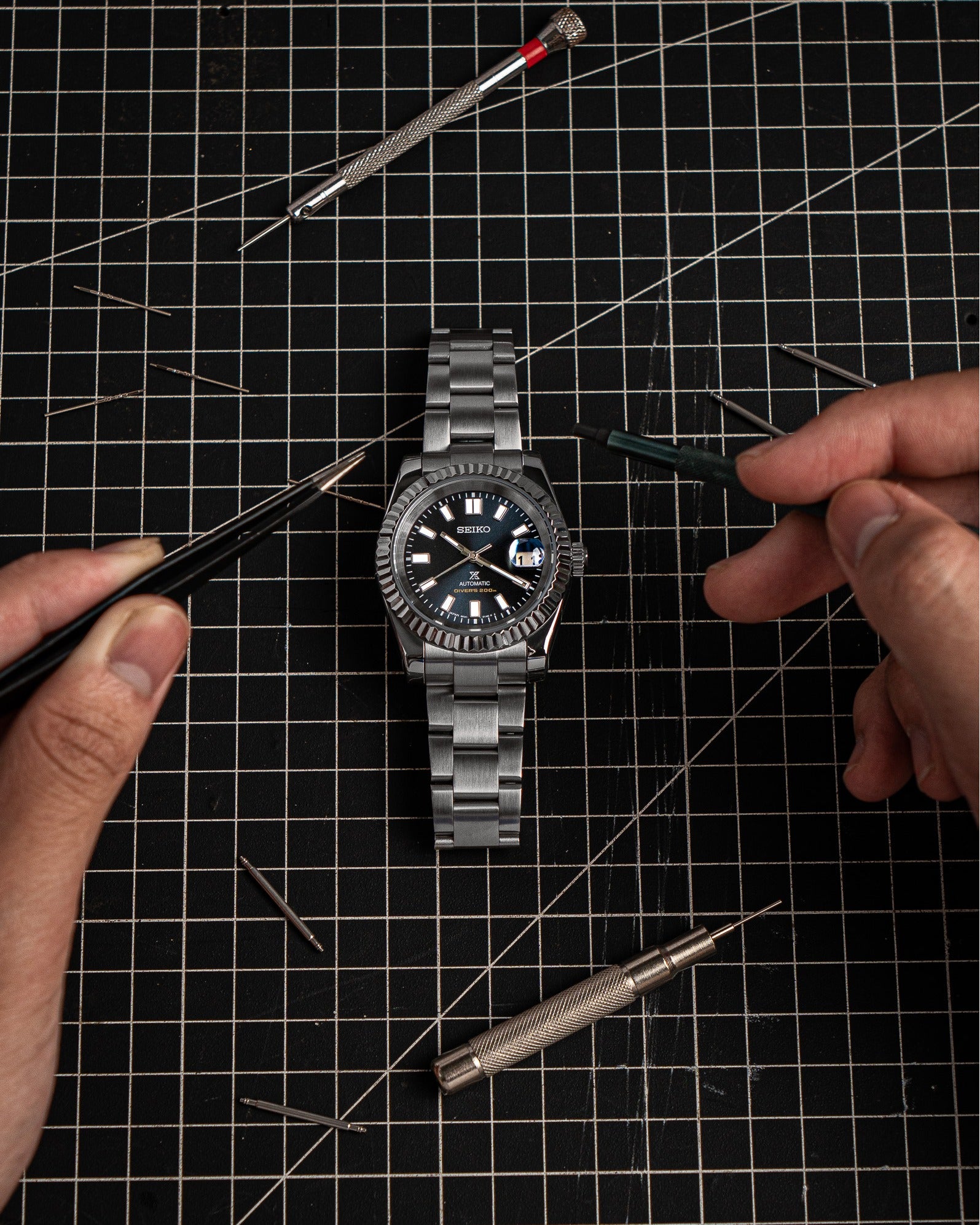 Powered by the VK63 hybrid chronograph movement. Hand-assembled with care for those who value clean design and detail.