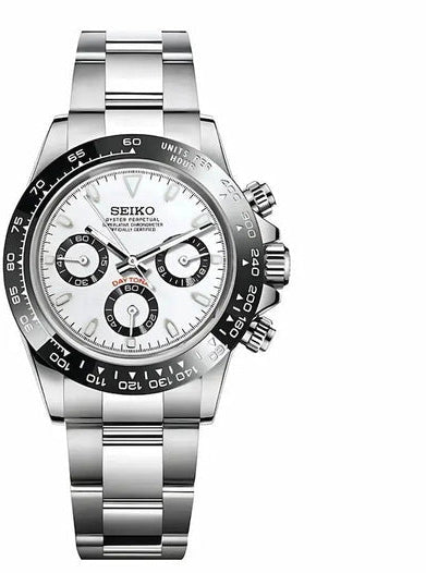 Inspired by the iconic Panda Daytona design, this 40 mm chronograph balances precision and everyday wear. Finished with a ceramic bezel and sapphire crystal.